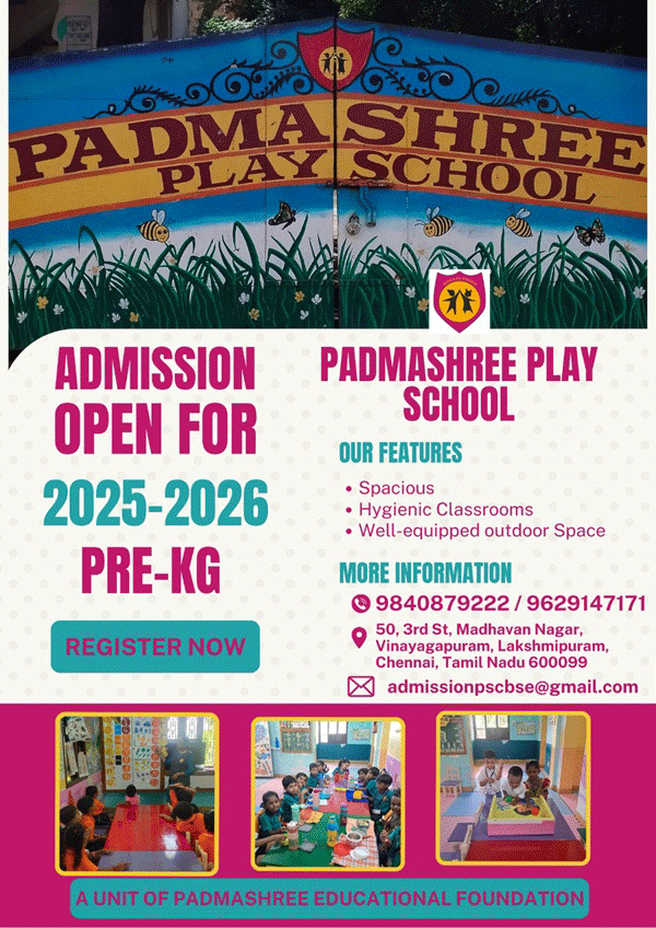 We are glad, and appreciate your decision in selecting our school for your child’s education. We welcome you and your child to Padmashree School, the first CBSE School by the Padmashree Educational Foundation.